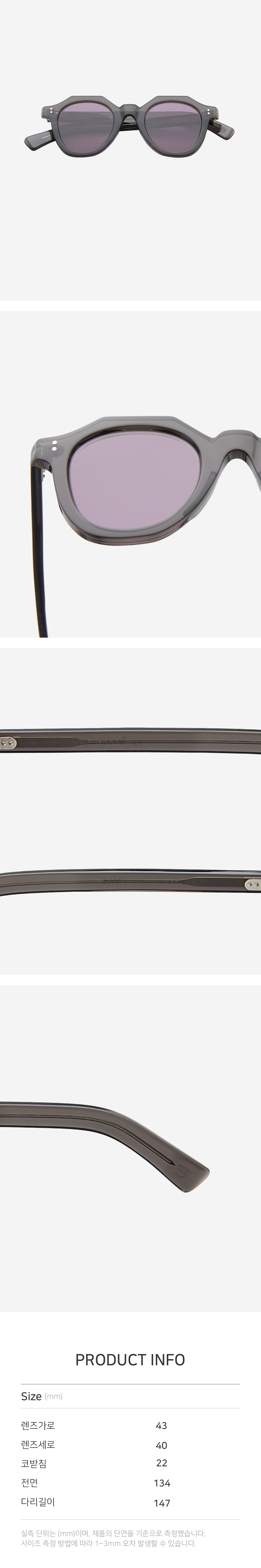 프렌치 빈티지의 대표적인 모델로 1940~50년대에 흔히 볼수 있는 크라운 판토 스타일의 안경이테지만 림 쉐입은 웰링턴형에 가까운 아방가르드한 디자인이 특징입니다. Lenses of guepard eyewear 빈티지한 느낌의 프레임이 좋은 이유는 선글라스로 착용해도 이질감이 전혀 없기 때문입니다. 빛에 쉽게 반사되었던 당시(1940~50년대 프렌치 방식) 렌즈의 단점을 보완하기 위해 커브가 전혀 없는 후면 멀티 코팅 플랫 렌즈를 사용하였고 단순한 복각을 넘어 그동안 볼 수 없던 컬러 베리에이션을 표현해냈습니다.