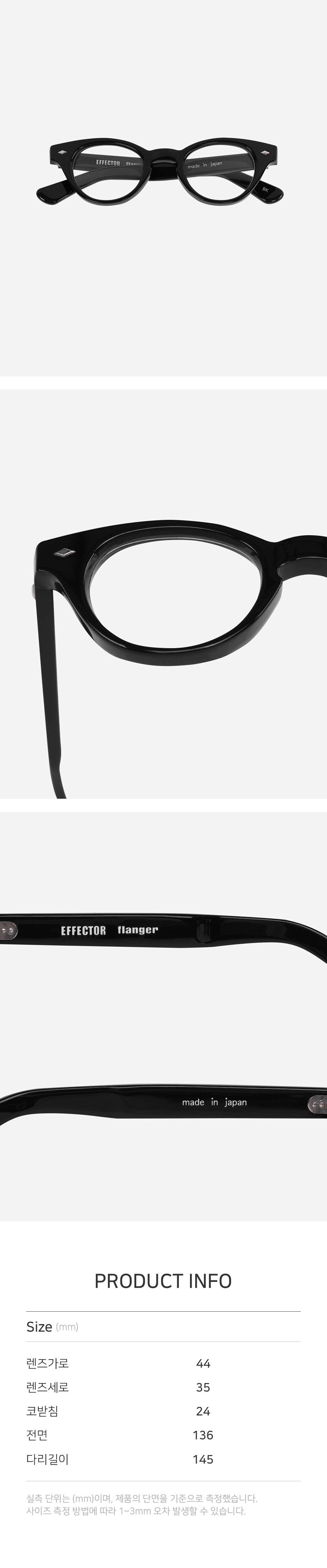 실측 단위는 mm이며, 제품의 단면을 기준으로 측정했습니다.