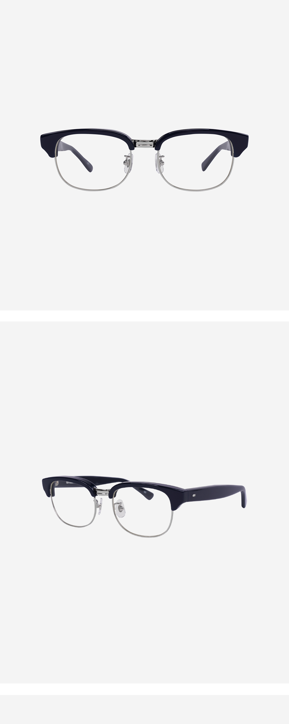 Delay 시리즈 2번째 모델. 부드러운 스퀘어 형태의 하금테 안경