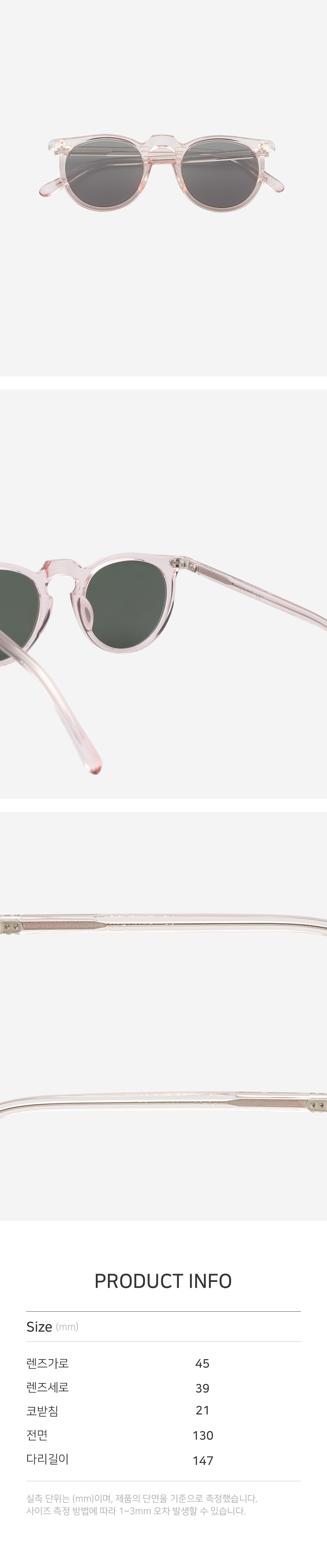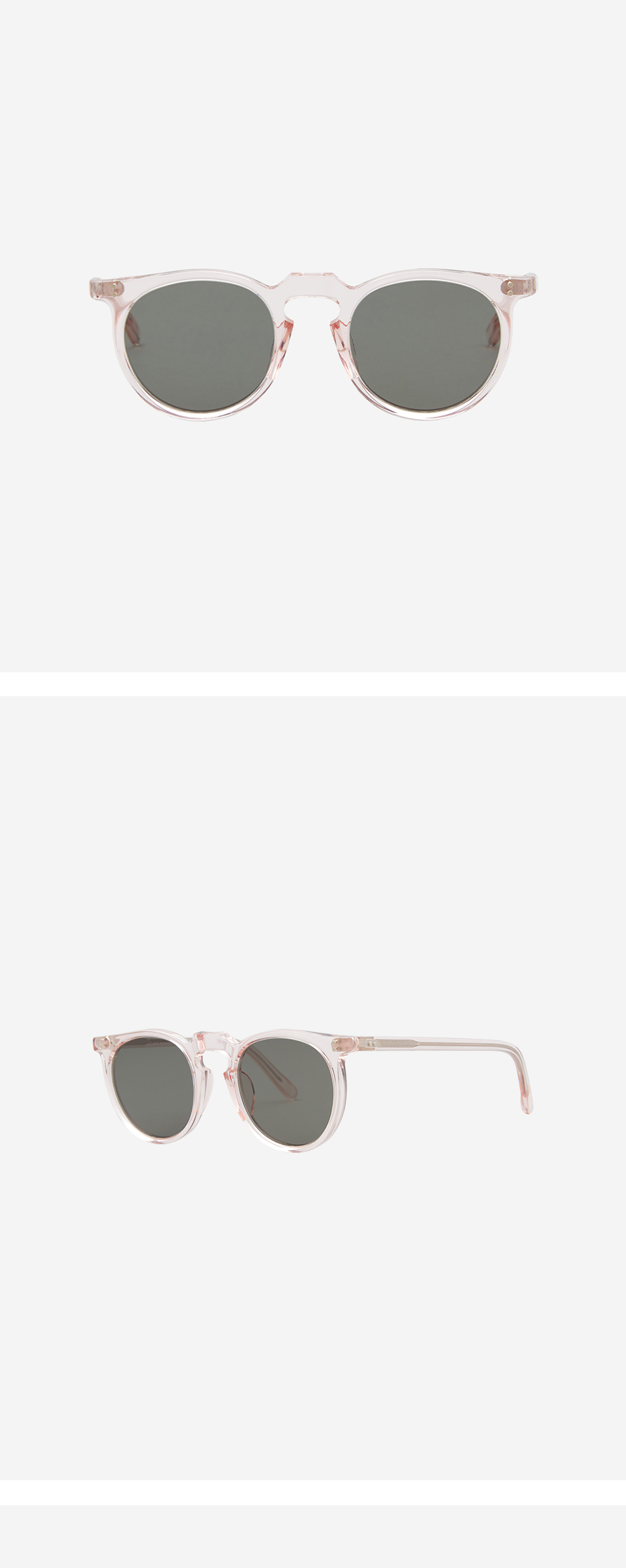1950년대 프렌치 판토 스타일의 안경테로 키홀 브릿지가 림 상단에 맞닿을 정도로 높이 위치해 있는게 특징입니다. 무난한 디자인이지만 브릿지 디테일의 포인트만으로 충분히 매력 있는 모델입니다. Lenses of guepard eyewear 빈티지한 느낌의 프레임이 좋은 이유는 선글라스로 착용해도 이질감이 전혀 없기 때문입니다. 빛에 쉽게 반사되었던 당시(1940~50년대 프렌치 방식)렌즈의 단점을 보완하기 위해 커브가 전혀 없는 후면 멀티 코팅 플랫 렌즈를 사용하였고 단순한 복각을 넘어 그동안 볼 수 없던 컬러 베리에이션을 표현해냈습니다.