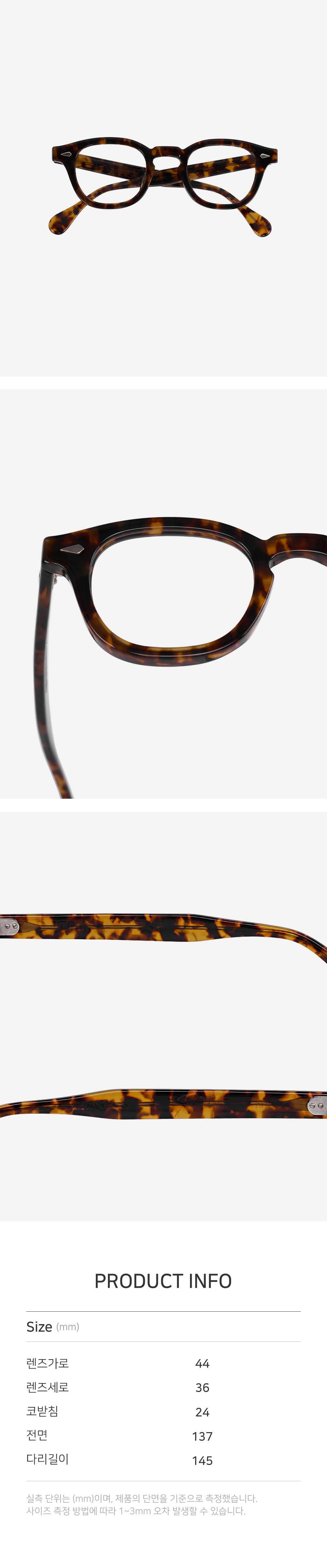| 렌즈가로 | 렌즈세로 | 코받침 | 전면 | 다리길이 |