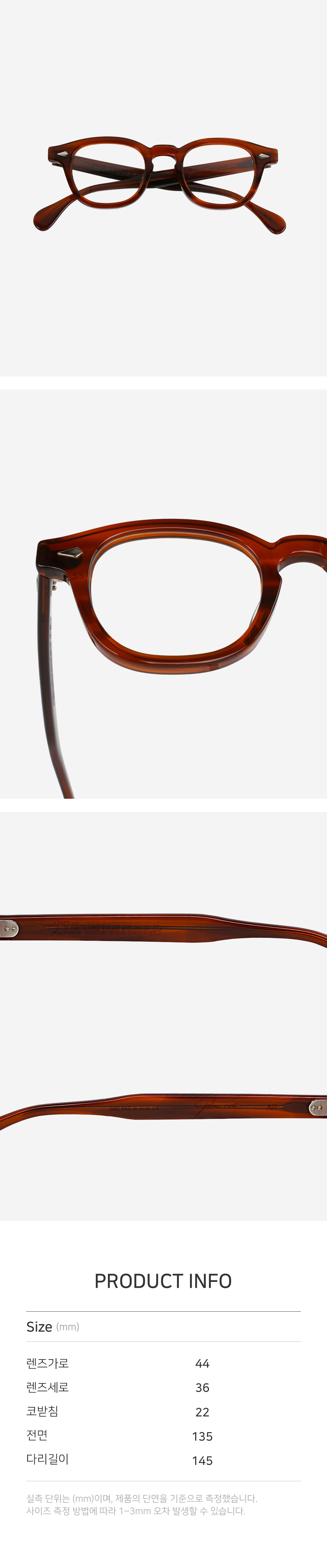 | 렌즈가로 | 렌즈세로 | 코받침 | 전면 | 다리길이 |