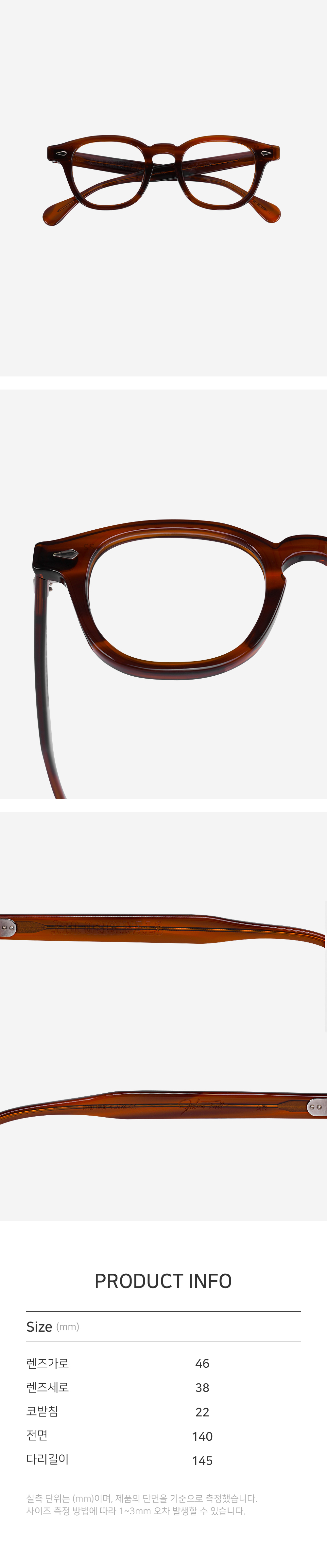 | 렌즈가로 | 렌즈세로 | 코받침 | 전면 | 다리길이 |