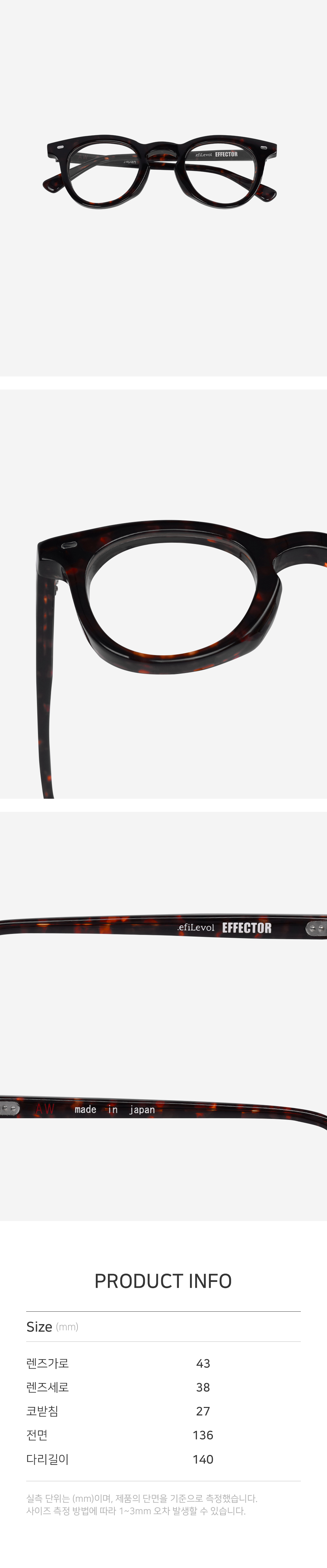 | 렌즈가로 | 렌즈세로 | 코받침 | 전면 | 다리길이 |