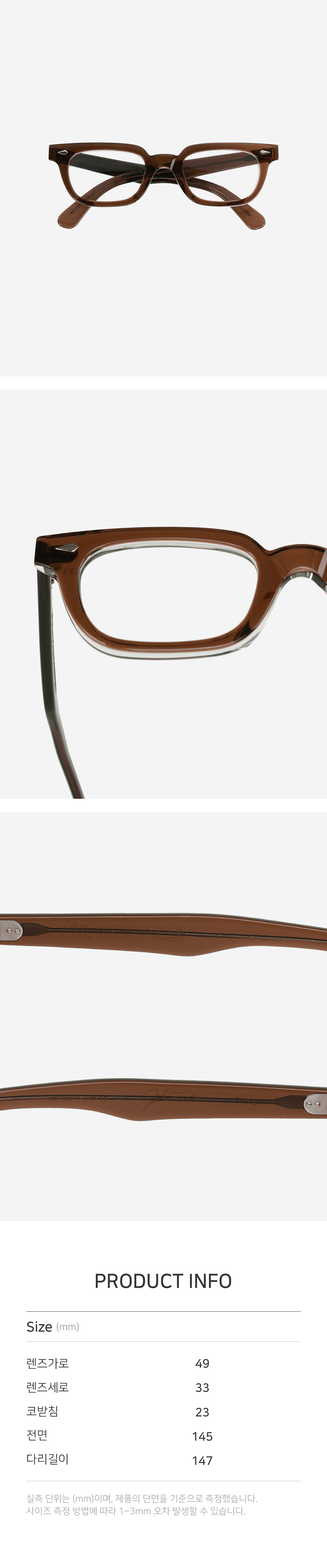 | 렌즈가로 | 렌즈세로 | 코받침 | 전면 | 다리길이 |
