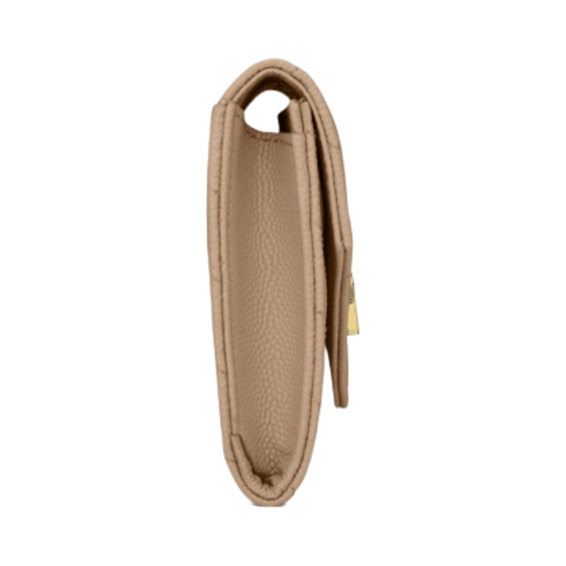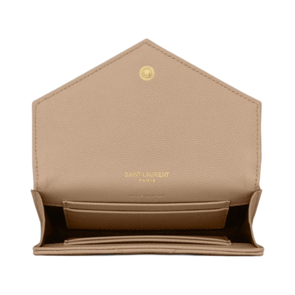 Saint Laurent Cassandre Matelasse Small Envelope Wallet in Grain de Poudre Embossed Leather Dark Beige
