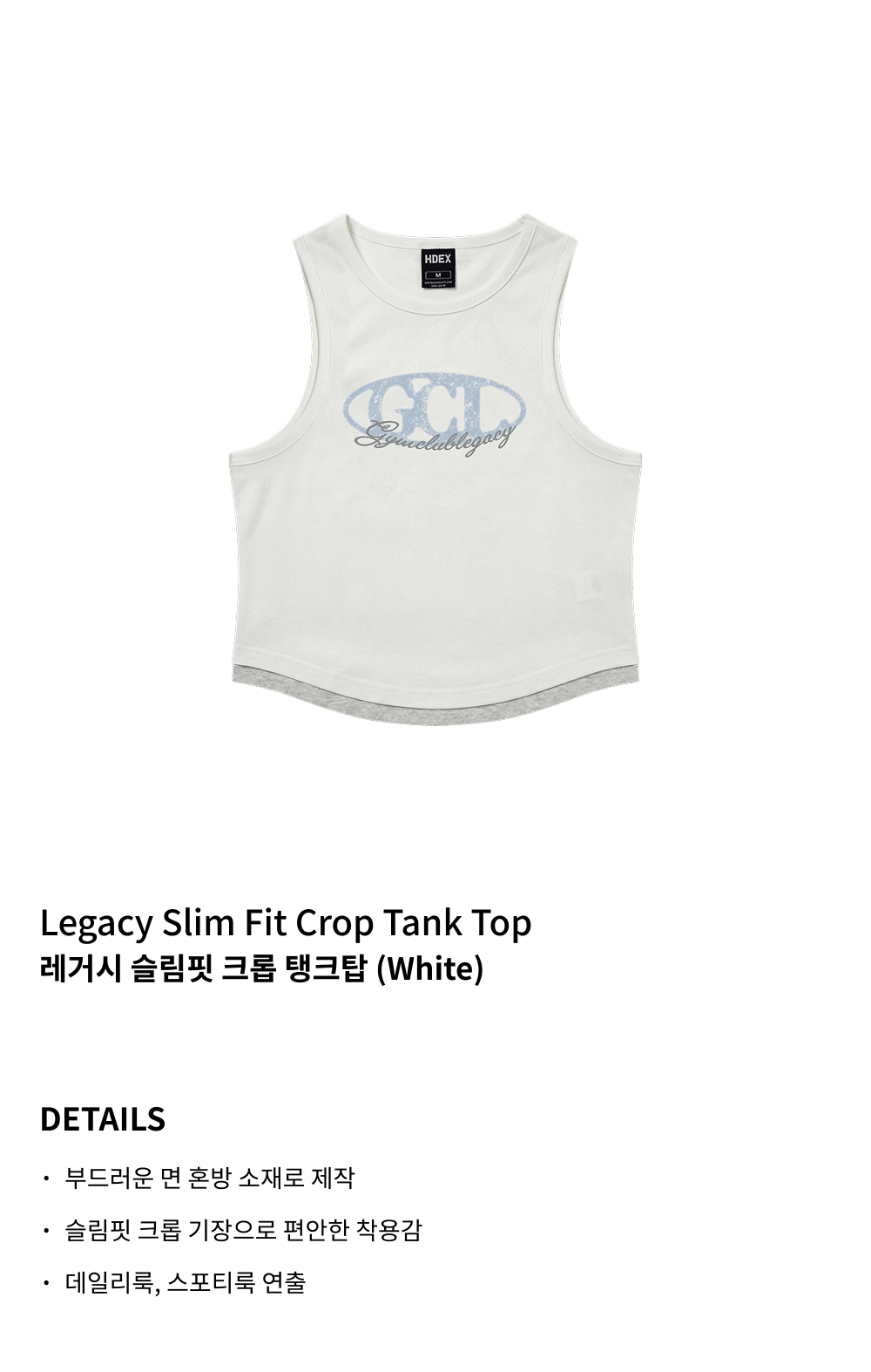 에이치덱스 레거시 슬림핏 크롭 탱크탑 화이트