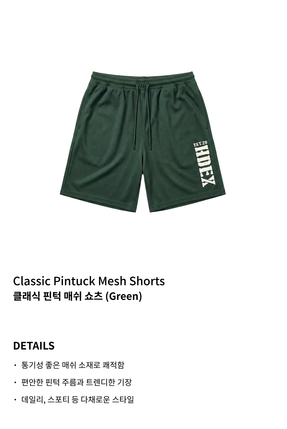 에이치덱스 클래식 핀턱 매쉬 쇼츠 그린