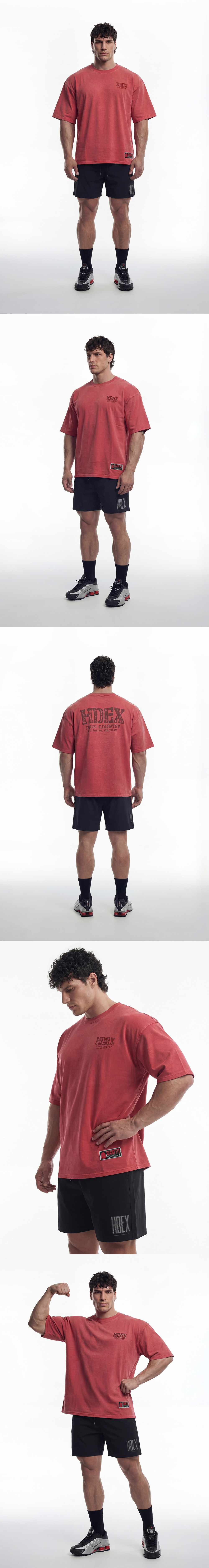 에이치덱스 코어 백로고 자이언트핏 워싱 숏 슬리브 피그먼트 딥 레드
