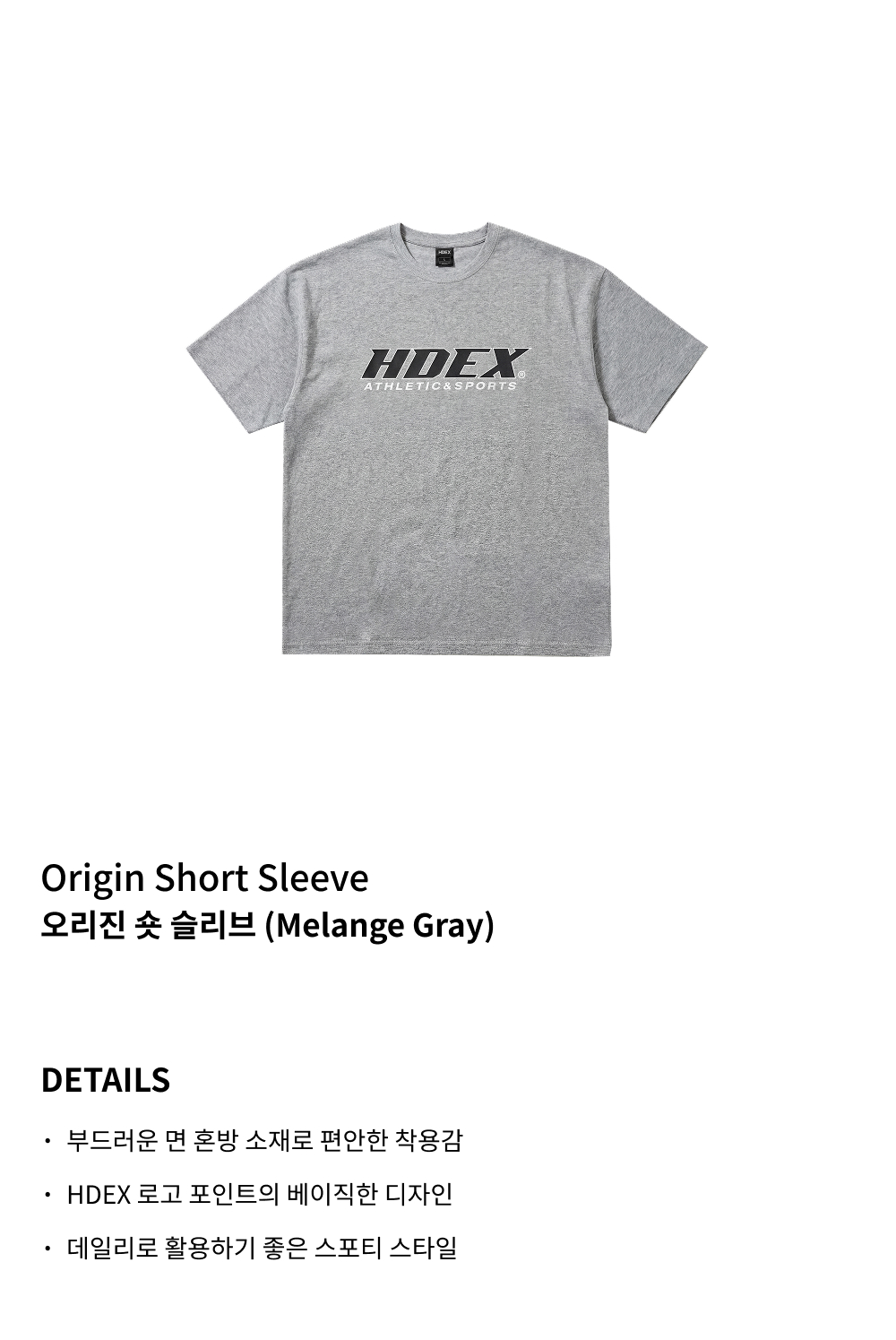 에이치덱스 오리진 숏 슬리브 멜란지 그레이