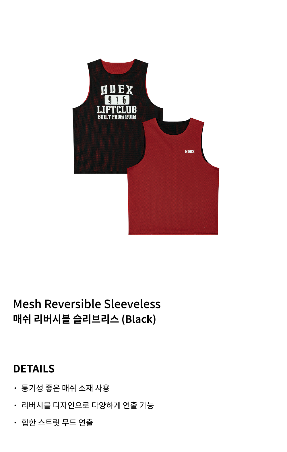 에이치덱스 매쉬 리버시블 슬리브리스 블랙
