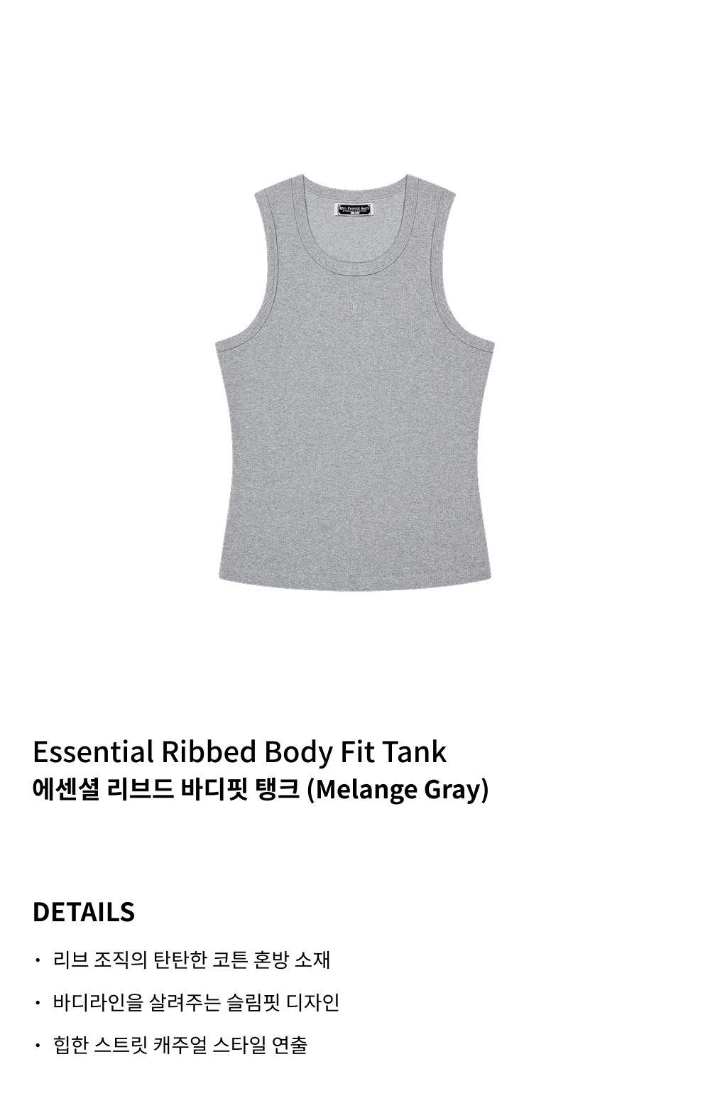 에이치덱스 에센셜 리브드 바디핏 탱크 멜란지 그레이