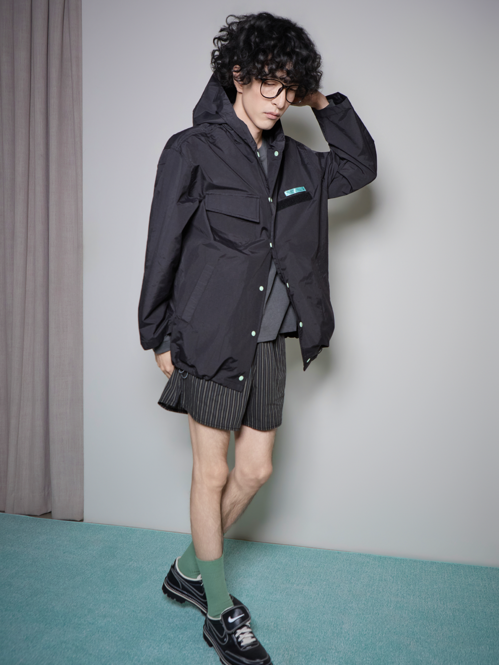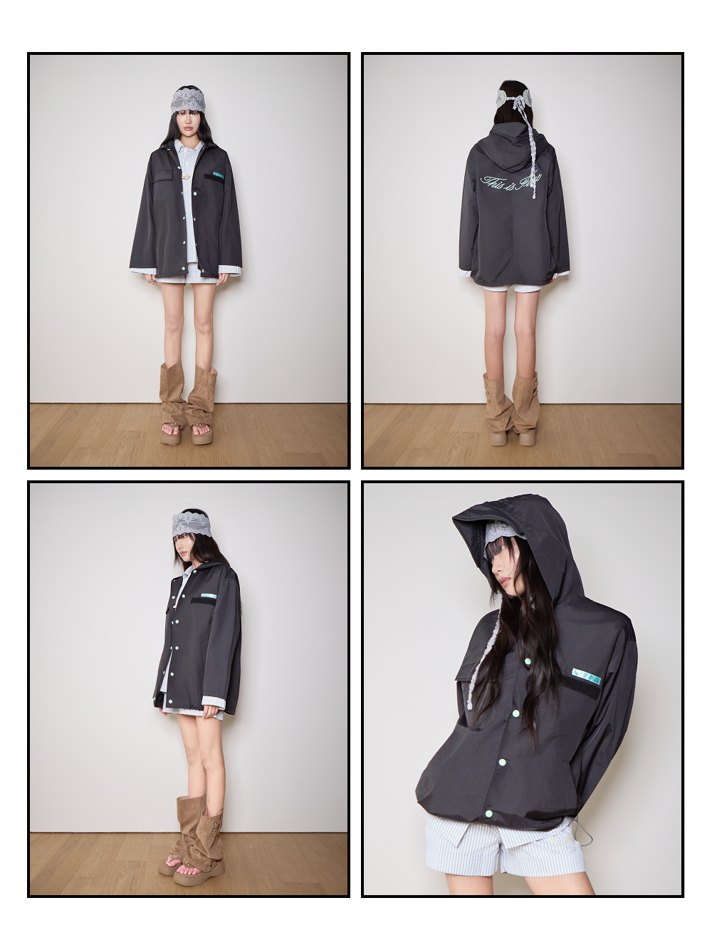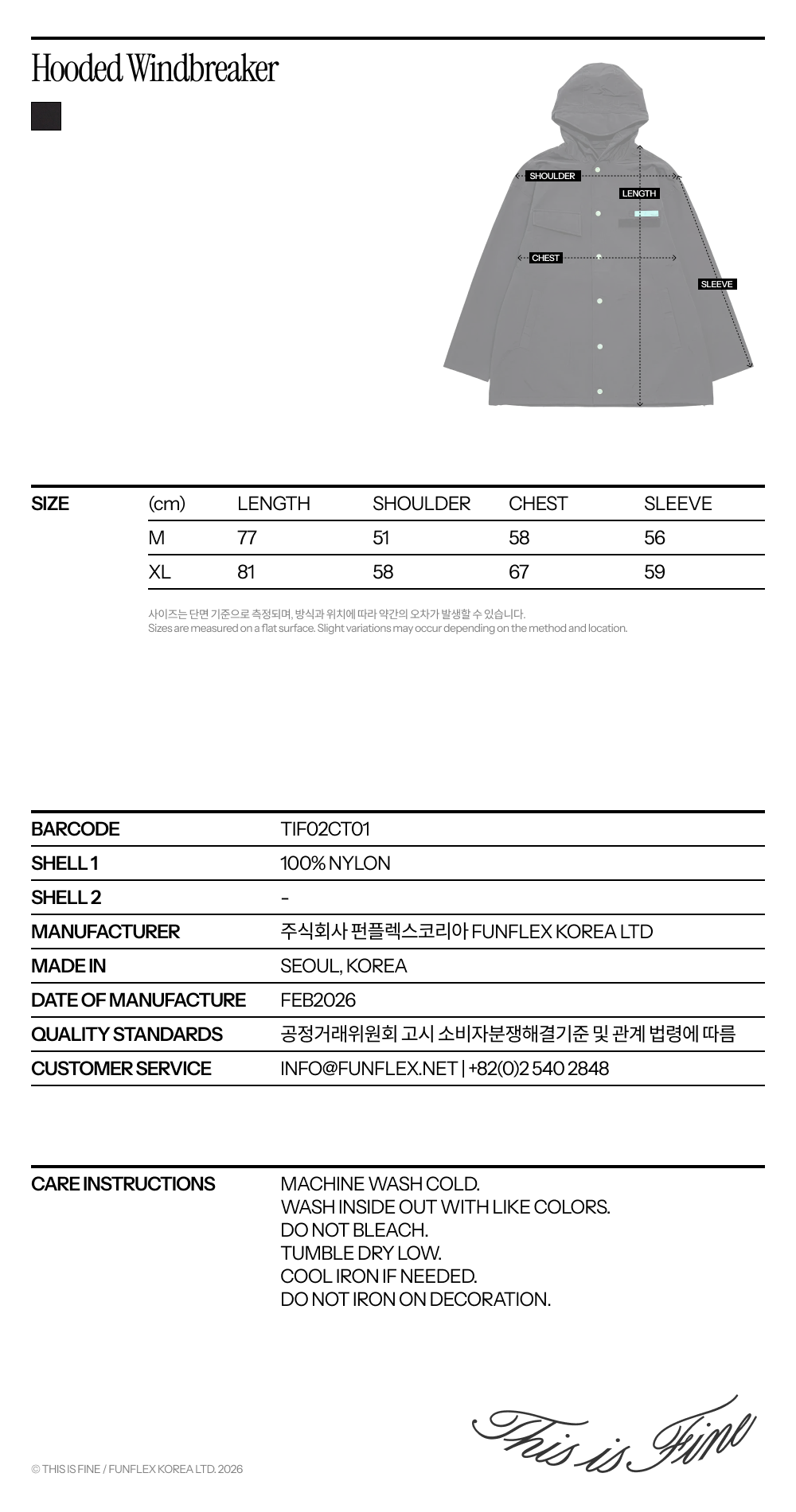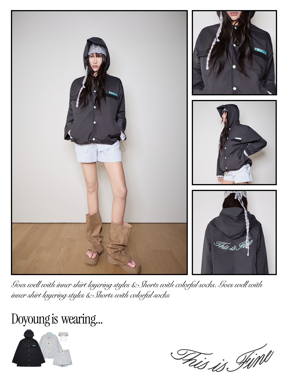 디스이즈파인 후디드 윈드브레이커 블랙