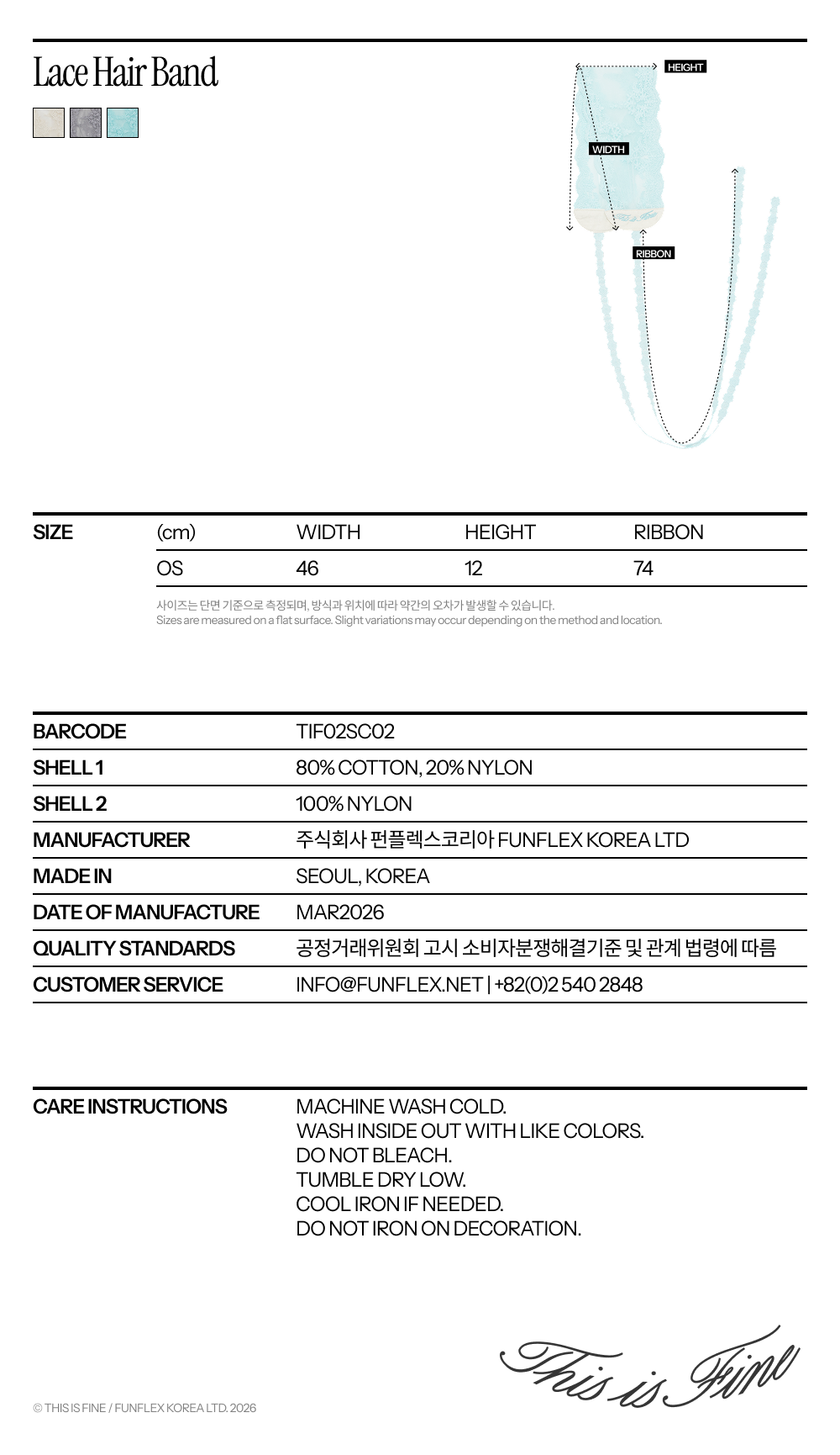 THIS IS FINE Lace Hair Band TIF Blue