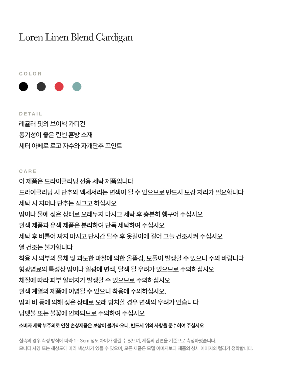 [사은품 증정] 세터 로렌 린넨 블렌드 가디건 블랙