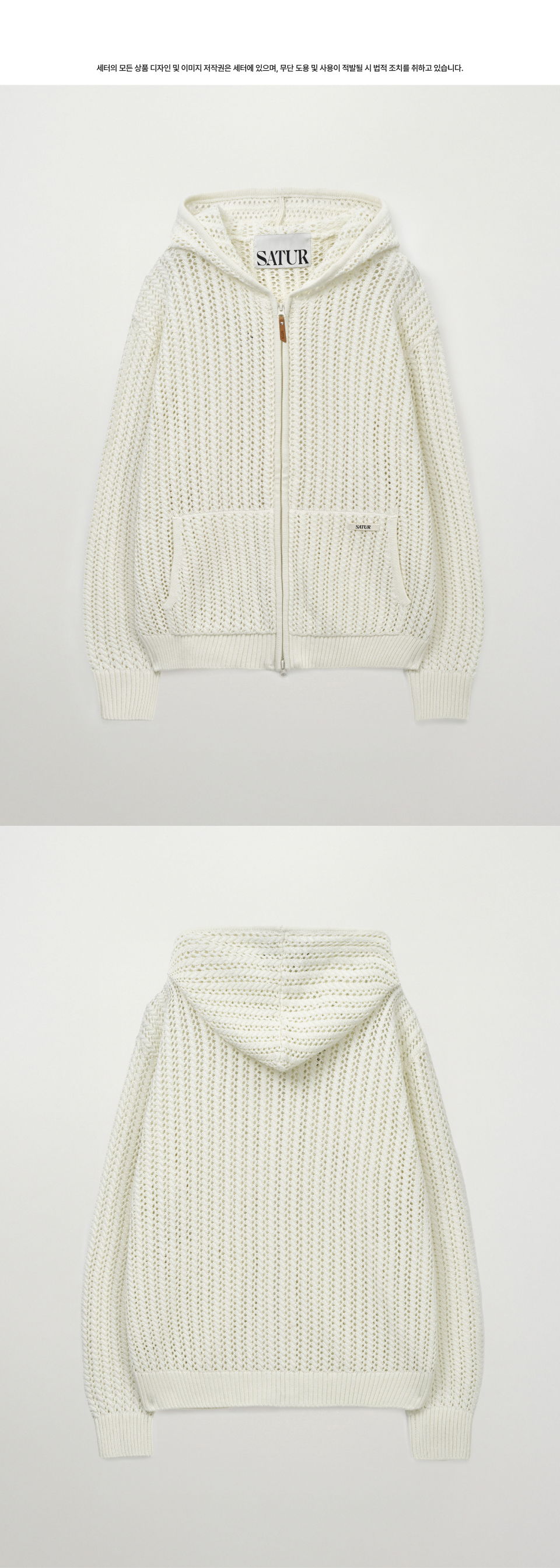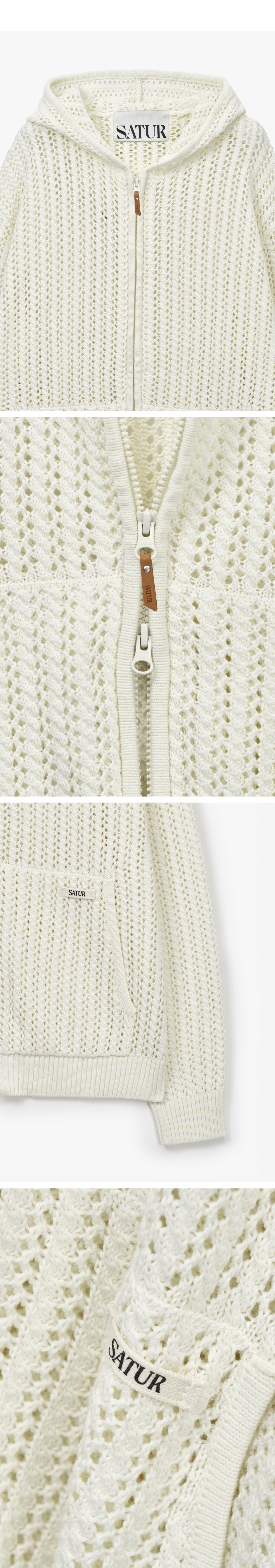 [사은품 증정] SATUR Crochet Knit Hood Zip-up Cream