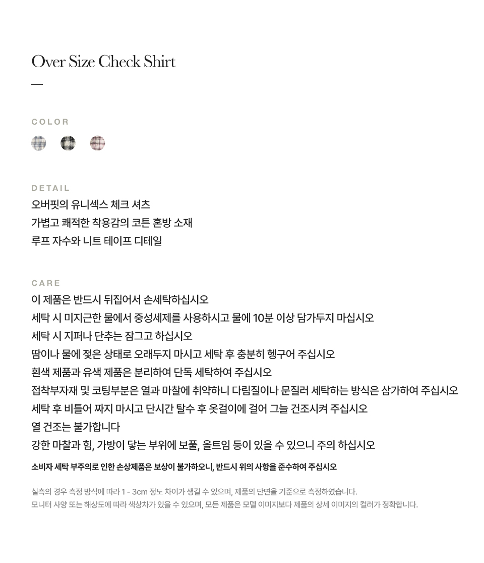측정 방법에 따라 사이즈에 일부 오차가 있을 수 있습니다.