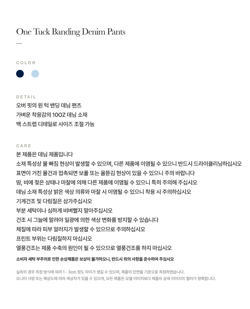 [사은품 증정] 세터 원 턱 밴딩 데님 팬츠 블루