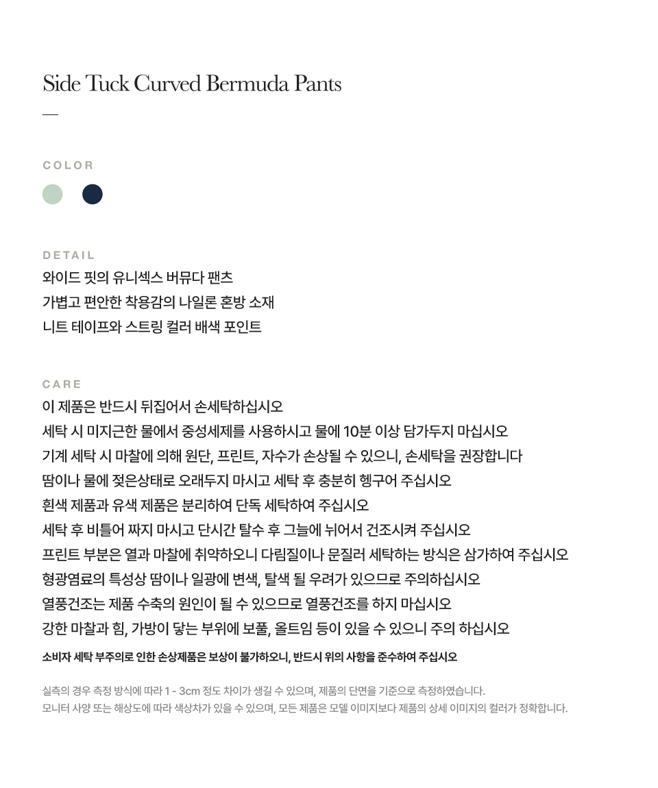 [사은품 증정] 세터 사이드 턱 커브드 버뮤다 팬츠 민트