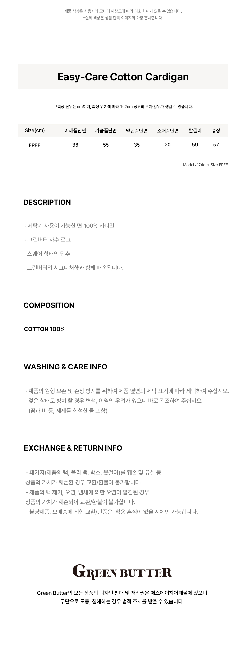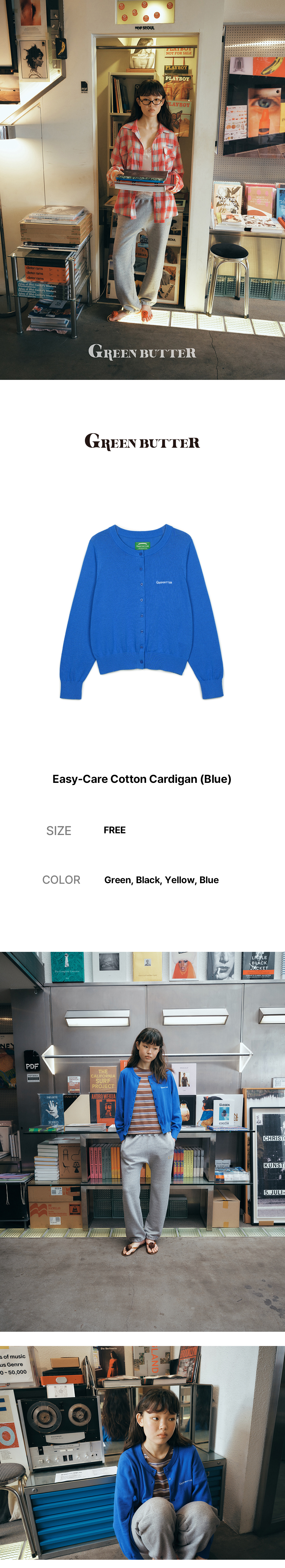 그린버터 이지케어 코튼 가디건 블루