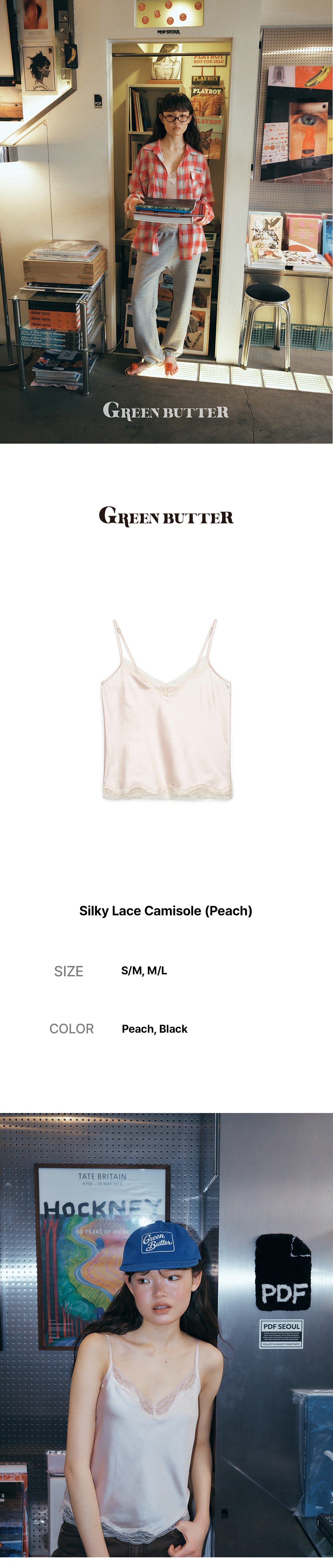 그린버터 실키 레이스 캐미솔 피치