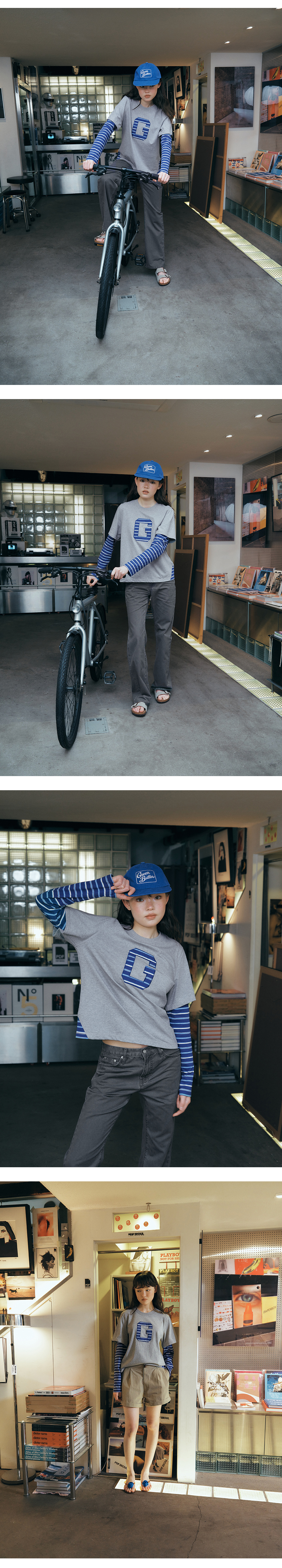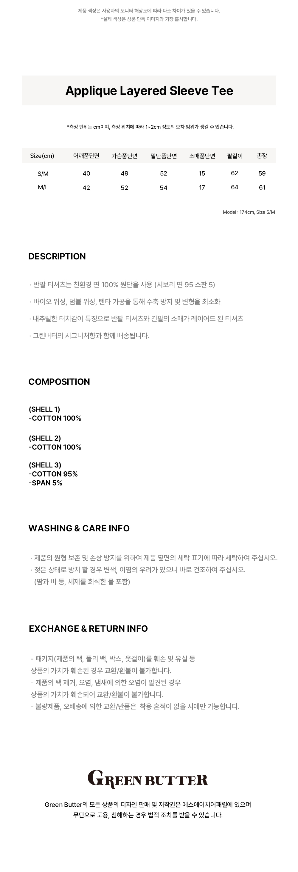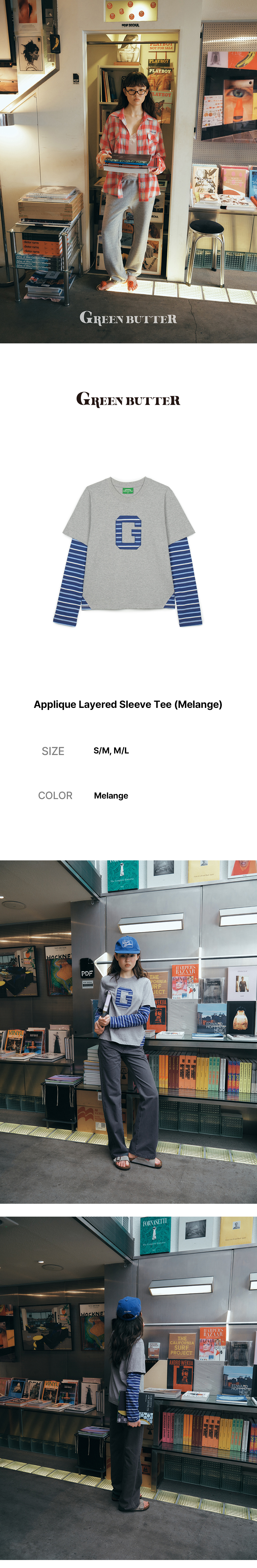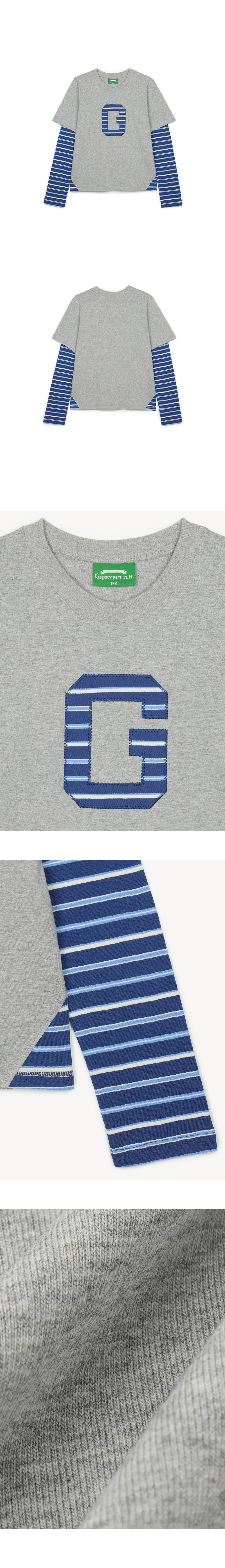 그린버터 아플리케 레이어드 슬리브 티 멜란지