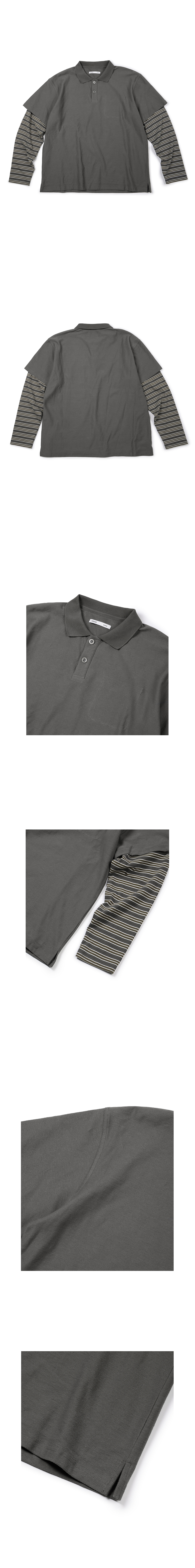 이티씨이 베이스 레이어드 스트라이프 폴로 롱슬리브 티 차콜