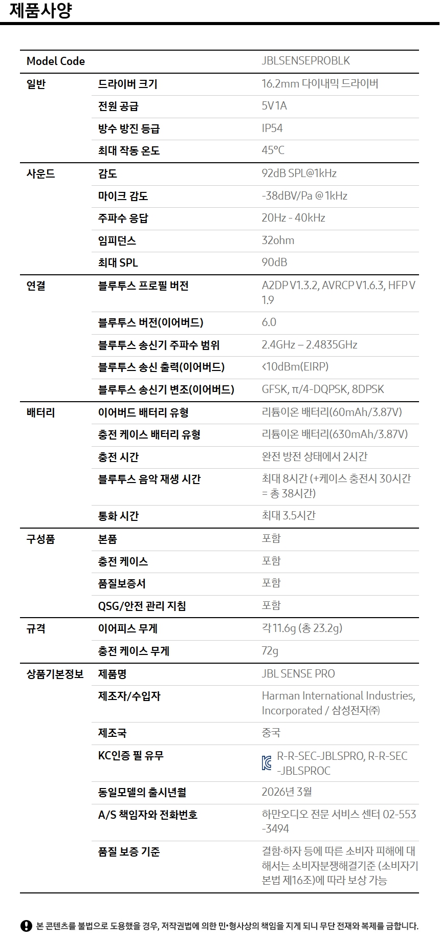 제이비엘 SENSE PRO 센스 프로 오픈형 러닝이어폰 블루투스 블루