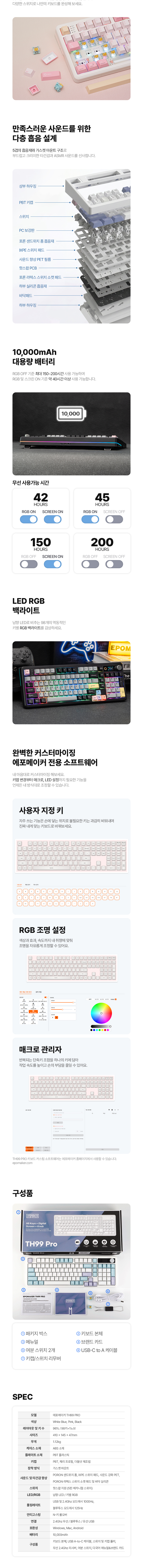 에포메이커 TH99 PRO 유무선 기계식 키보드 3모드 핫스왑 풀배열 정식수입 AS가능 영문각인 저소음 바다소금축 블랙