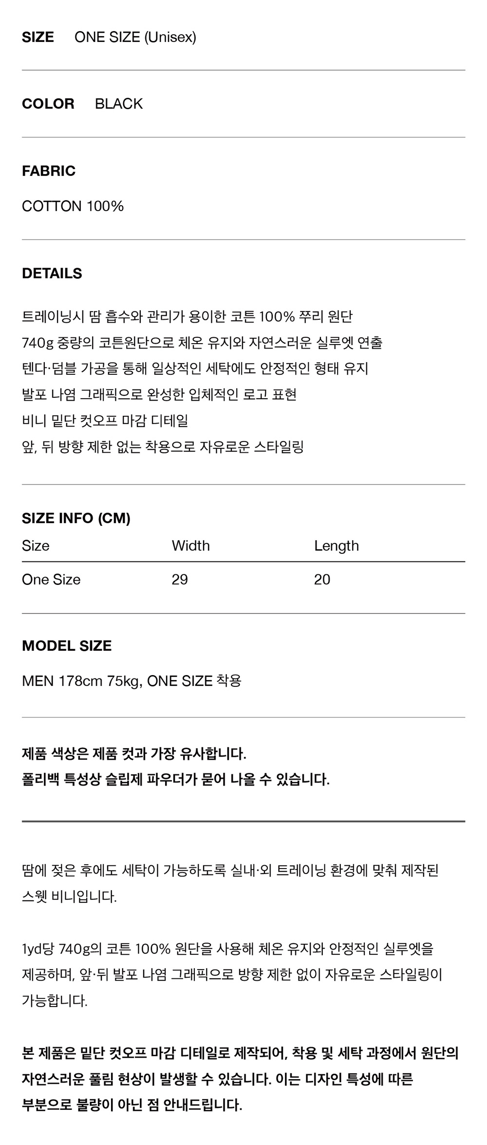 포즈넘버에잇 퍼프 프린트 스웻 비니 (블랙)