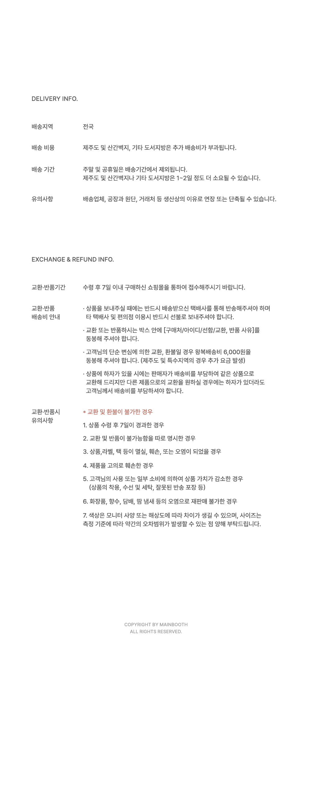 교환 및 반품 안내