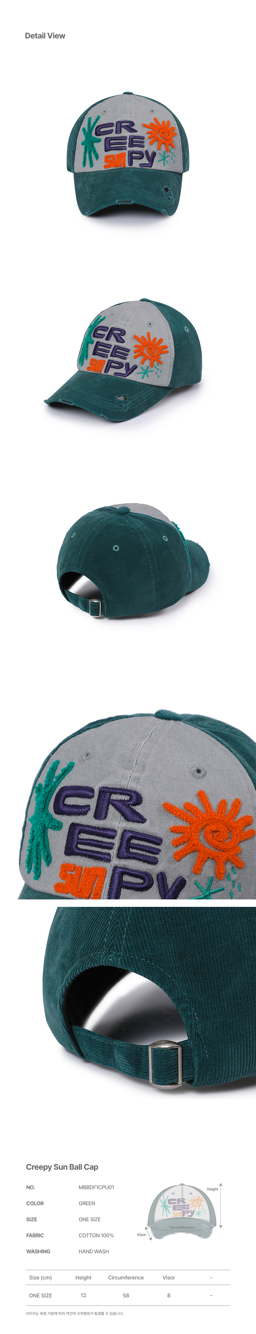 메인부스 크리피 썬 볼캡 그린