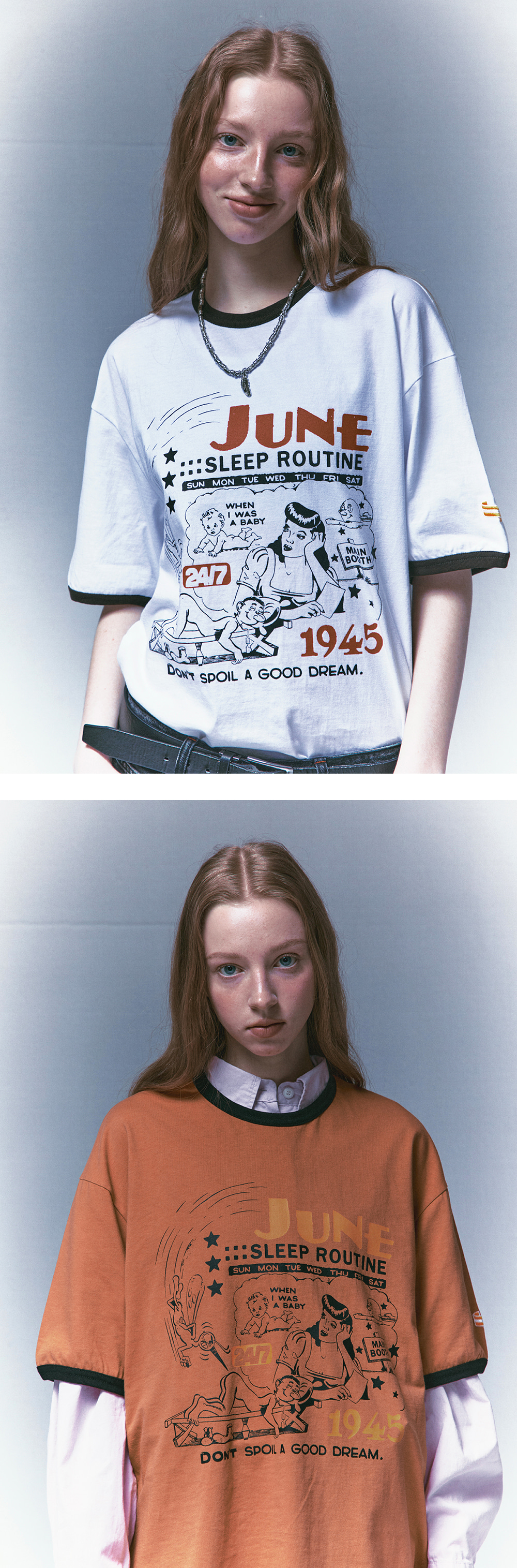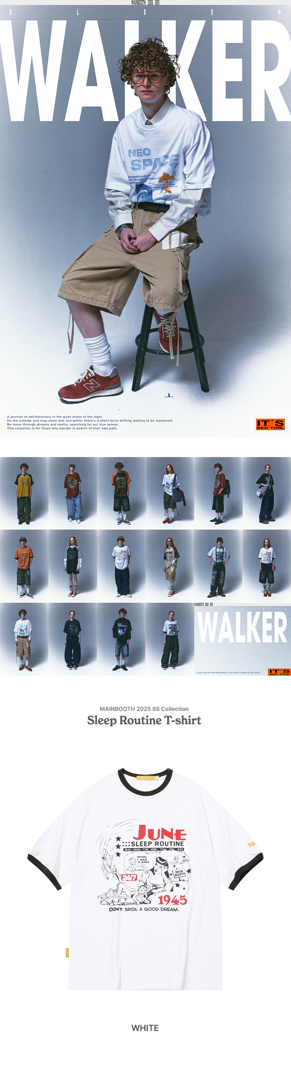 메인부스 슬립 루틴 티셔츠 화이트