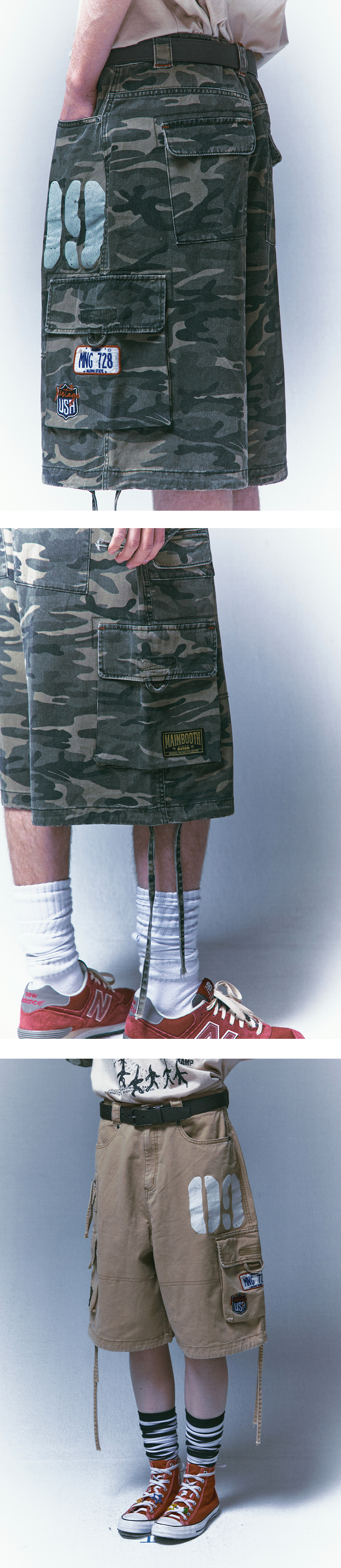 메인부스 빈티지 패치 카고 쇼츠 카모