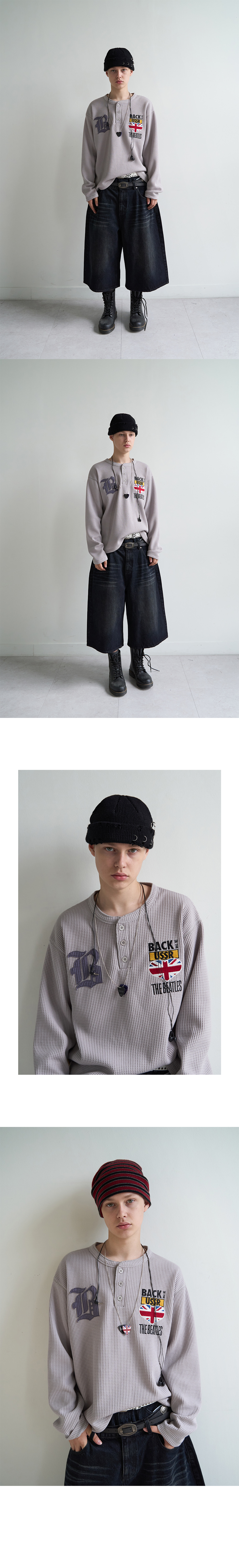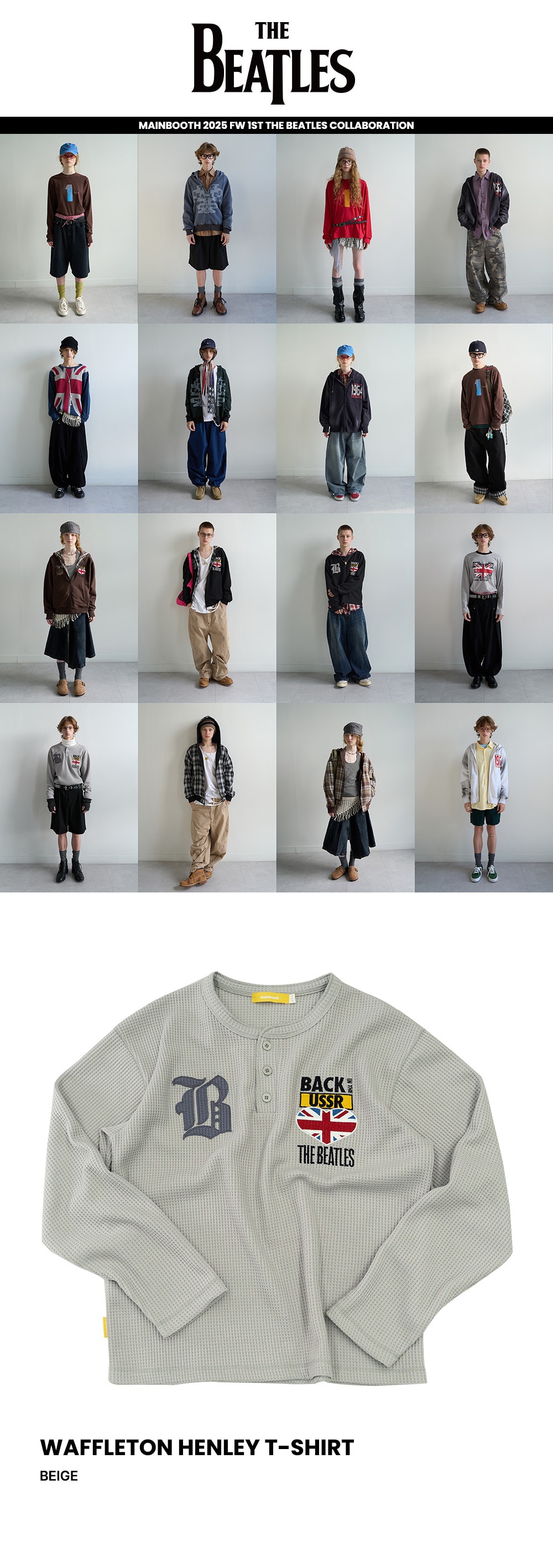 [트리플적립] MAINBOOTH Beatles x Waffleton Henley Neck T-Shirt Beige