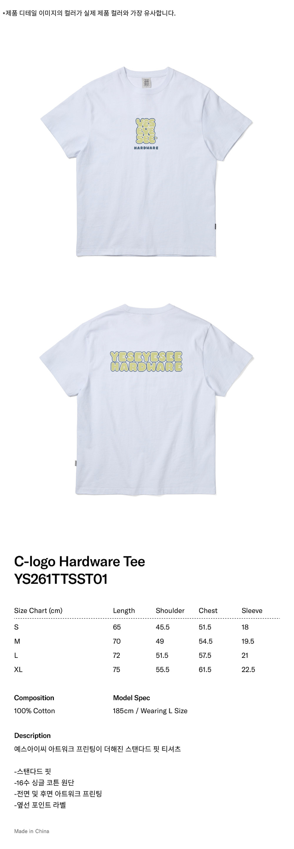 [더블적립]예스아이씨 씨로고 하드웨어 티 화이트