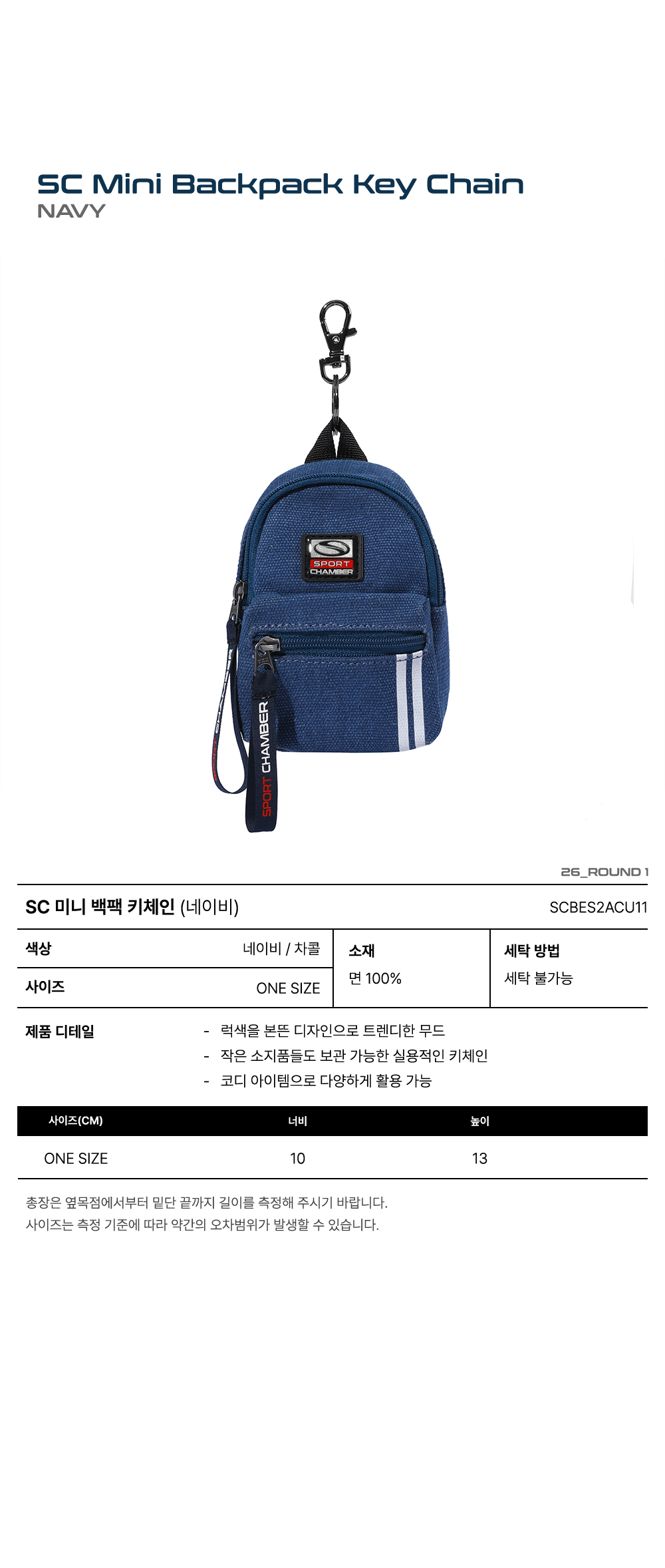[트리플적립] 스포츠챔버 SC 미니 백팩 키체인 네이비