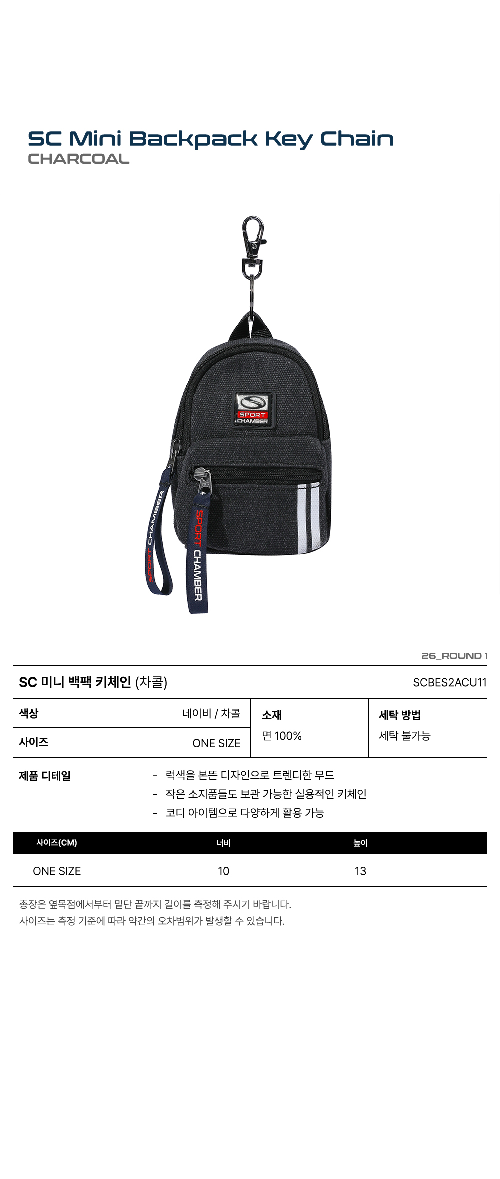 [트리플적립] 스포츠챔버 SC 미니 백팩 키체인 차콜