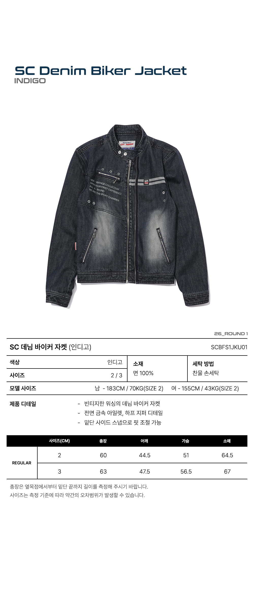 스포츠챔버 SC 데님 바이커 자켓 인디고