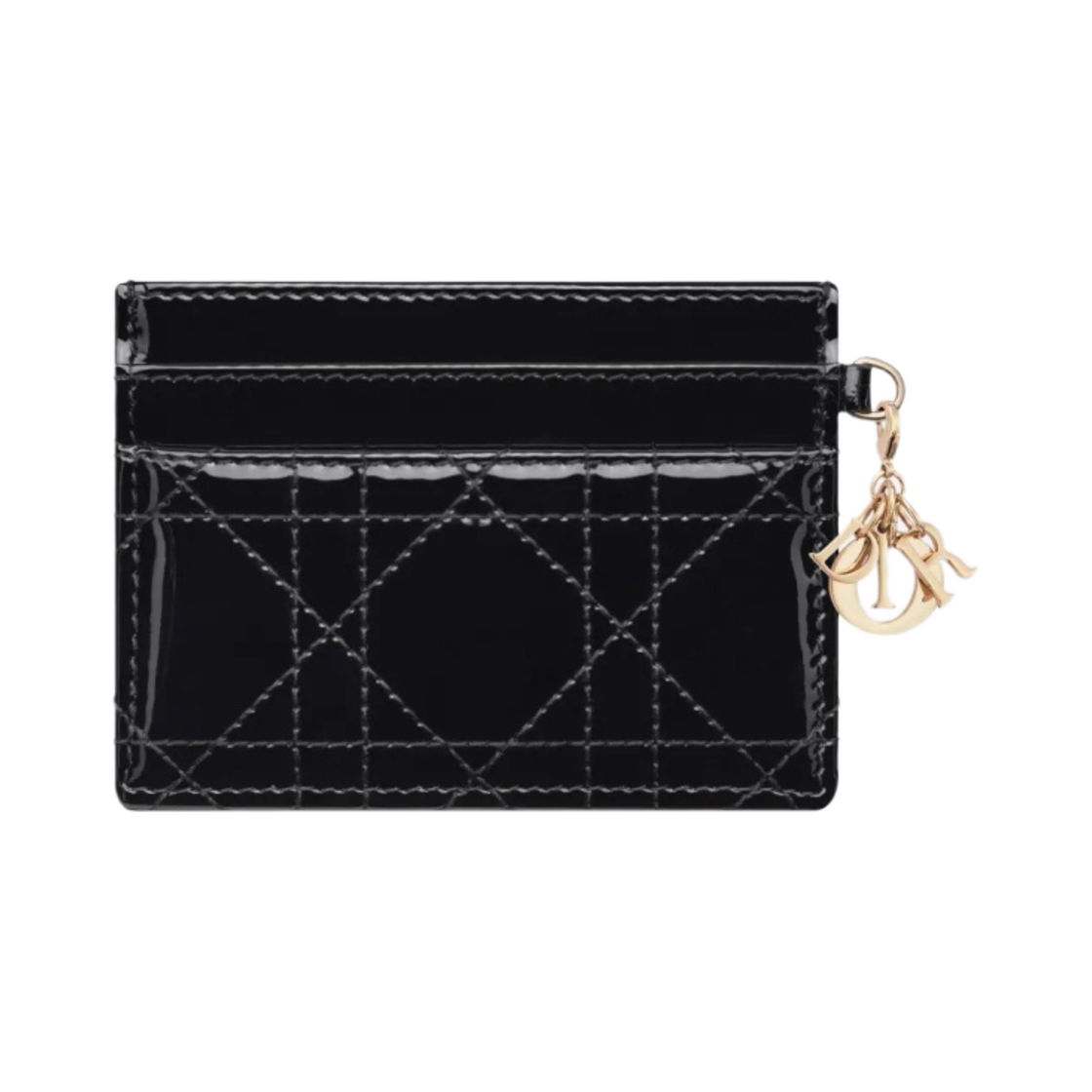 Dior Lady Five Slot Card Holder Patent Cannage Calfskin Black