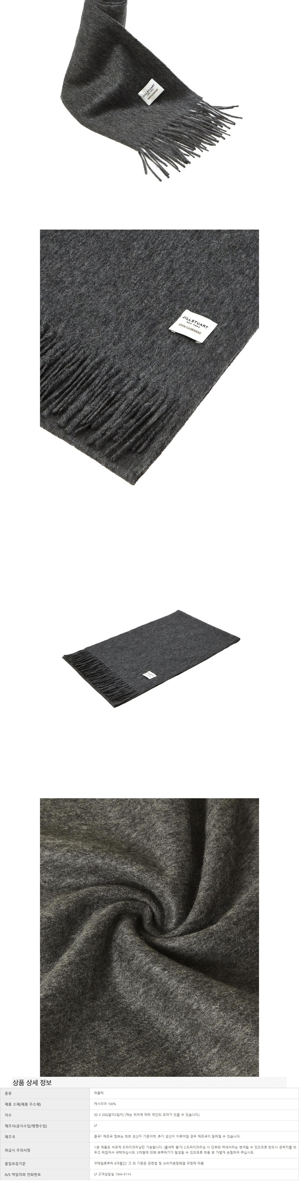 질스튜어트 액세사리 남성 남녀공용 로고포인트 캐시미어 100% 그레이 머플러 JUMU5F122G2 그레이