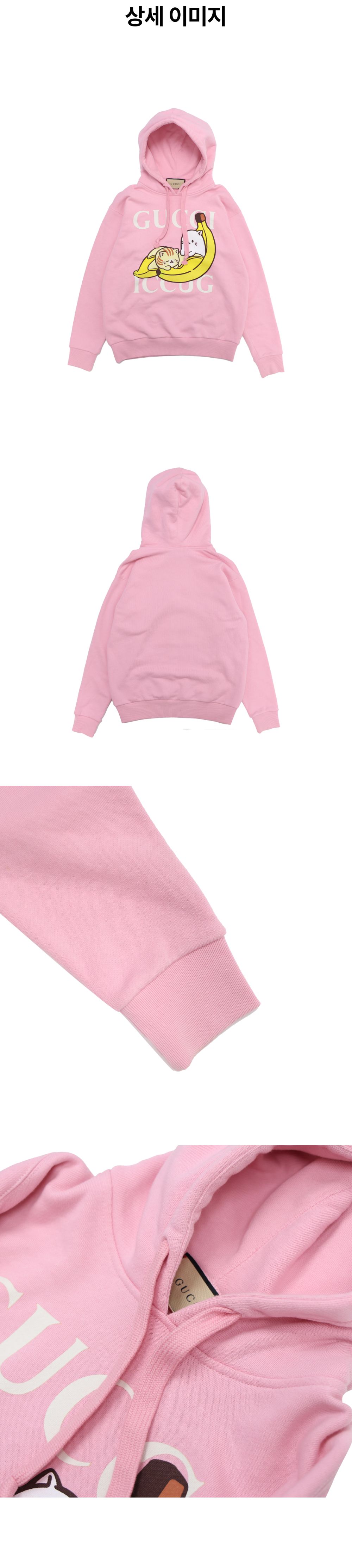 구찌 X 바나냐 로고 프린트 후드티 코튼 핑크