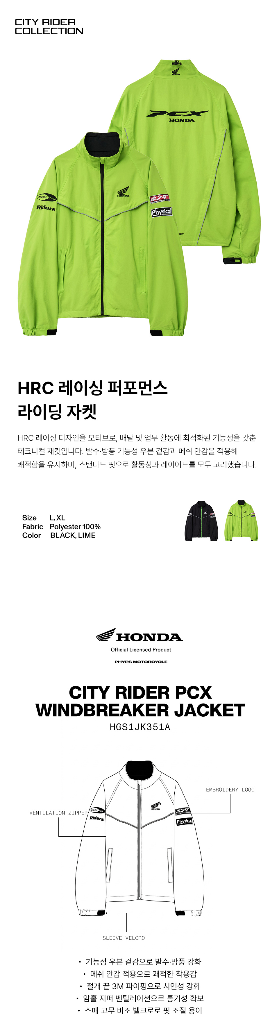 혼다 시티 라이더 PCX 윈드브레이커 자켓 라임