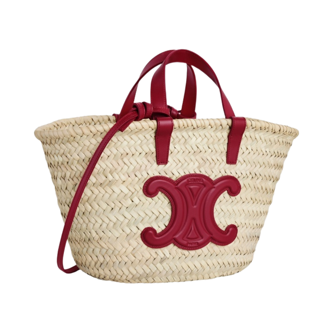 Celine Teen Triomphe Celine Classic Panier in Palm Leaves and Calfskin Carmin
