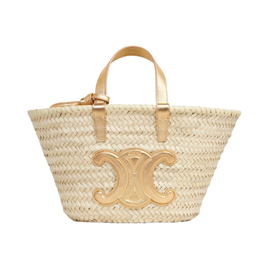 Celine Teen Triomphe Celine Classic Panier in Palm Leaves and Laminated Calfskin Gold