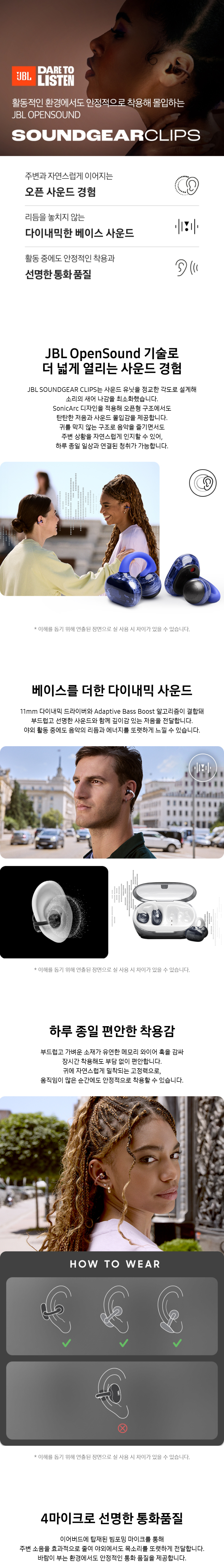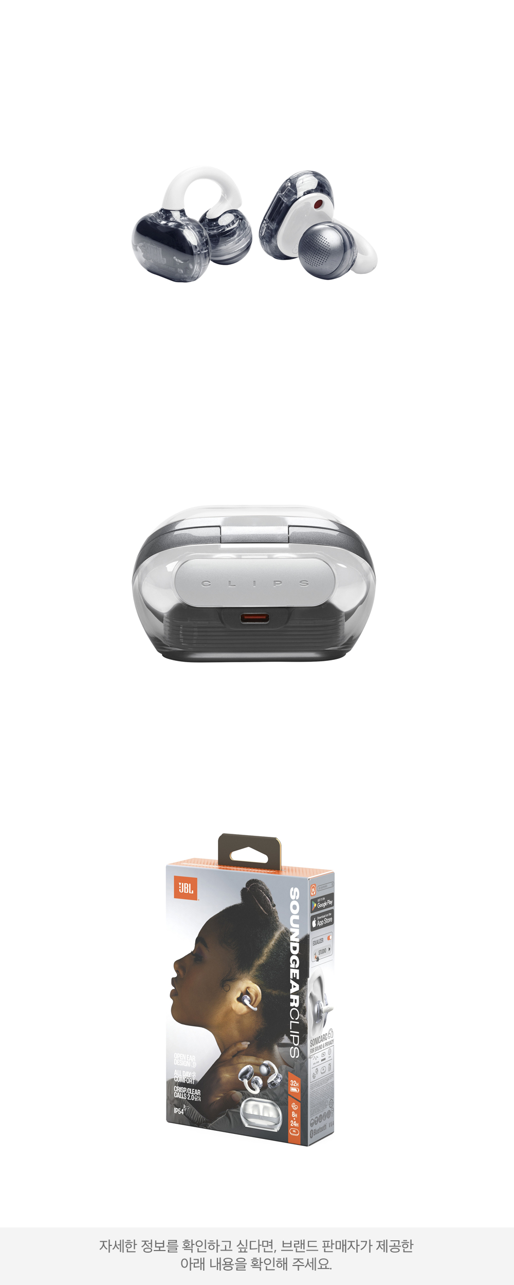 제이비엘 SOUNDGEAR CLIPS 사운드기어 클립 오픈형 블루투스 이어폰 귀걸이 화이트