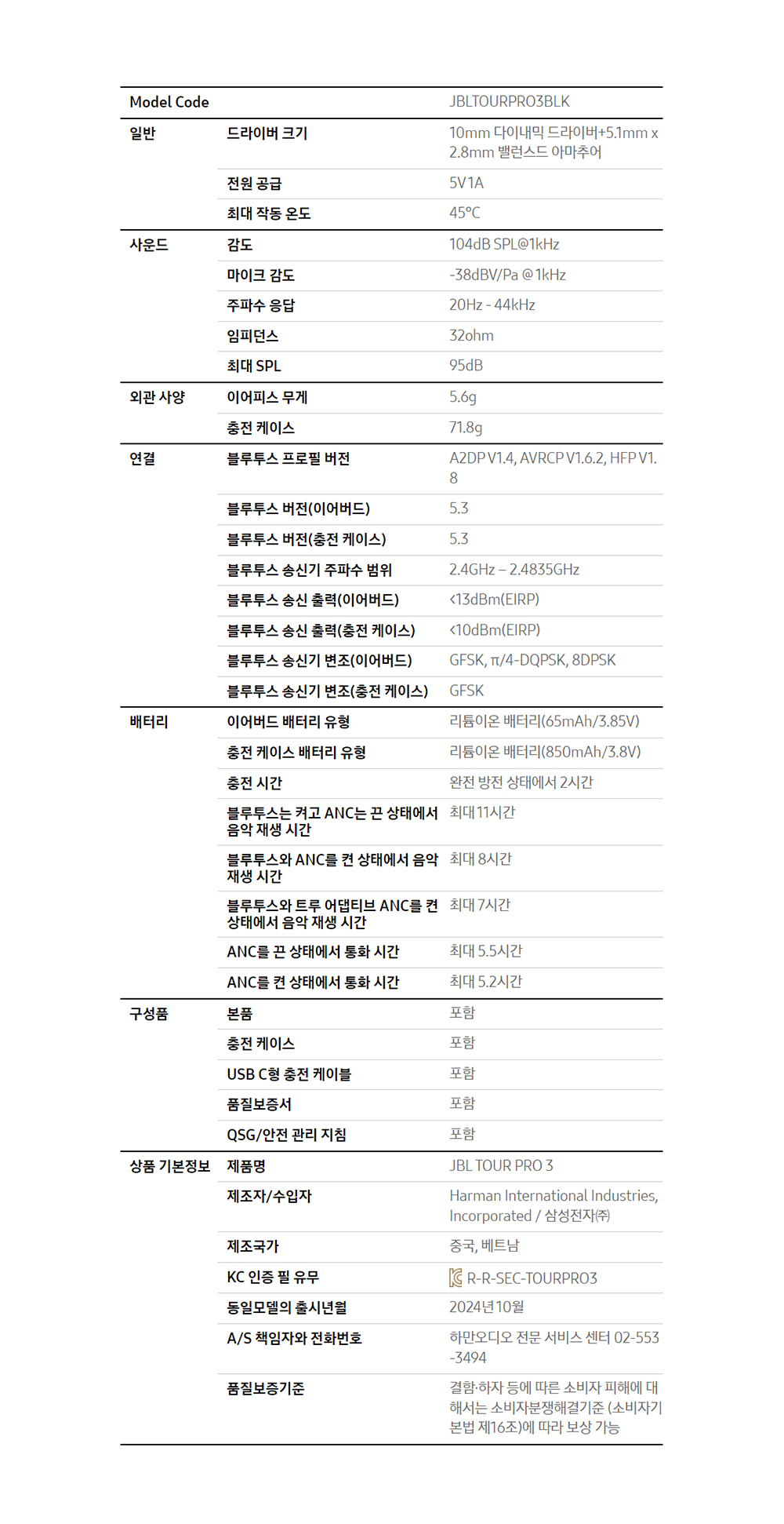 제이비엘 TOUR PRO3 노이즈캔슬링 디스플레이 블루투스 이어폰 블루