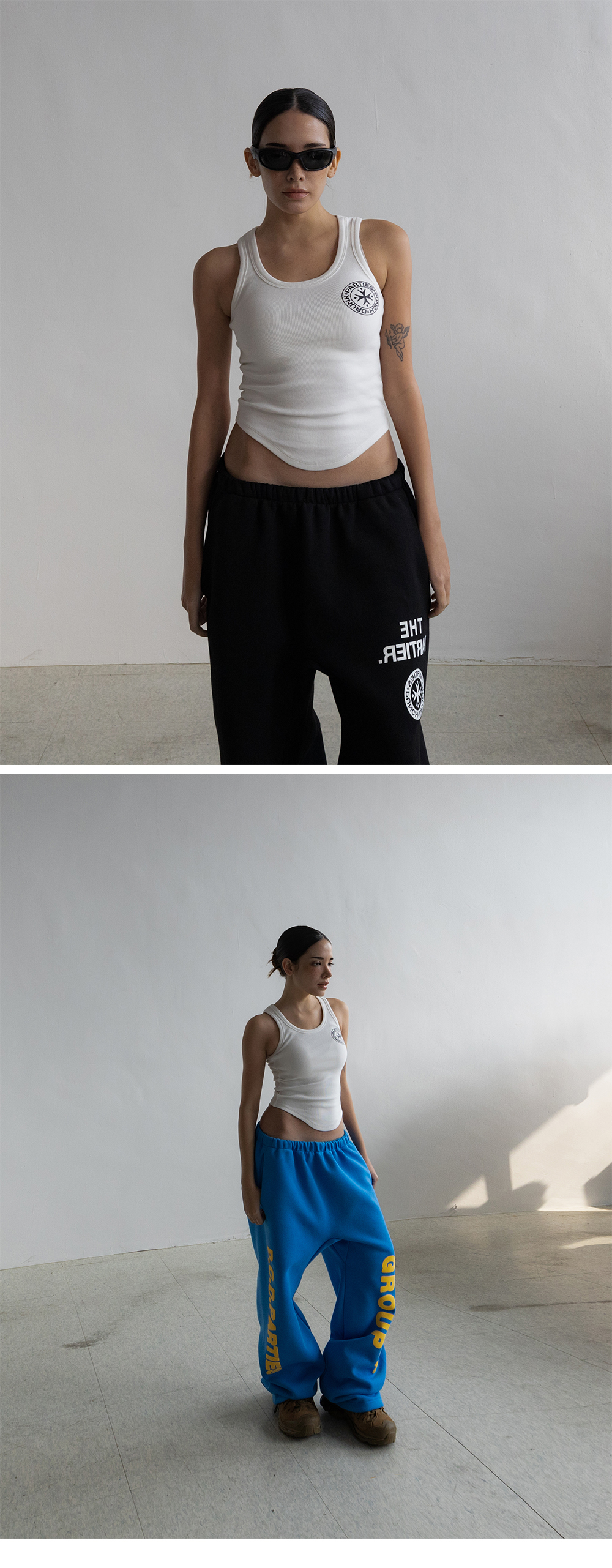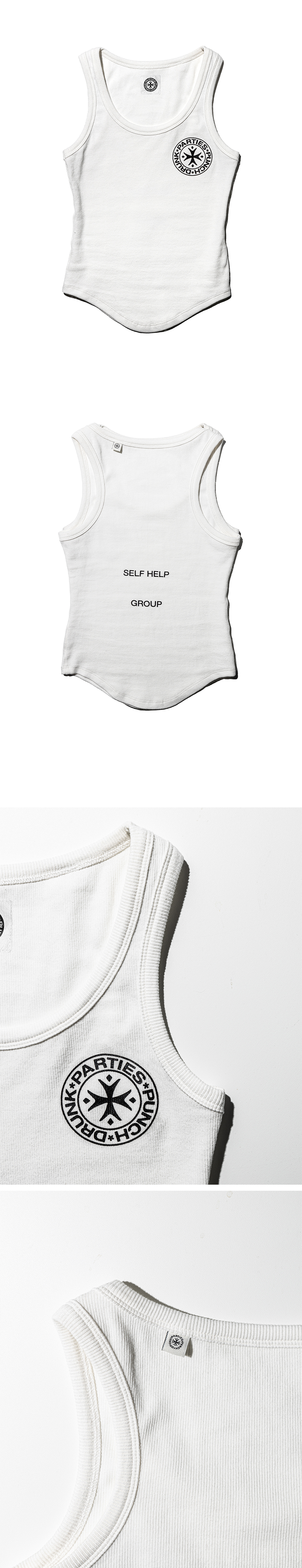 펀치 드렁크 파티즈 SHG 로고 베리에이션 슬리브리스 화이트