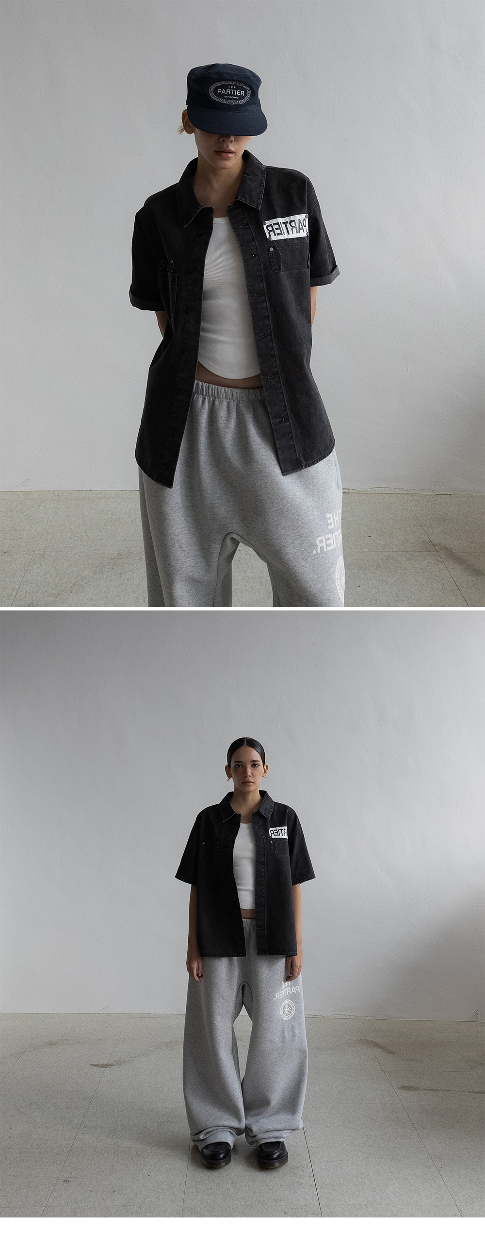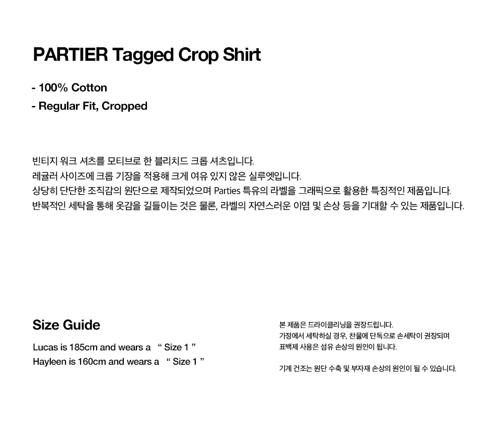 펀치 드렁크 파티즈 파티어 태그 크롭 셔츠 블리치 블랙