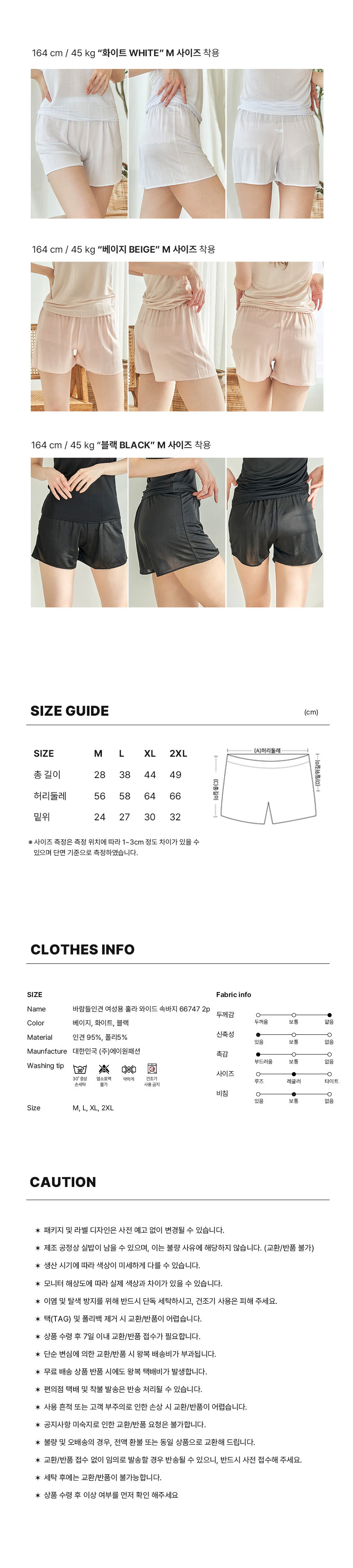 (W) 에이원 인견 훌라 와이드 속바지 747 2팩 블랙
